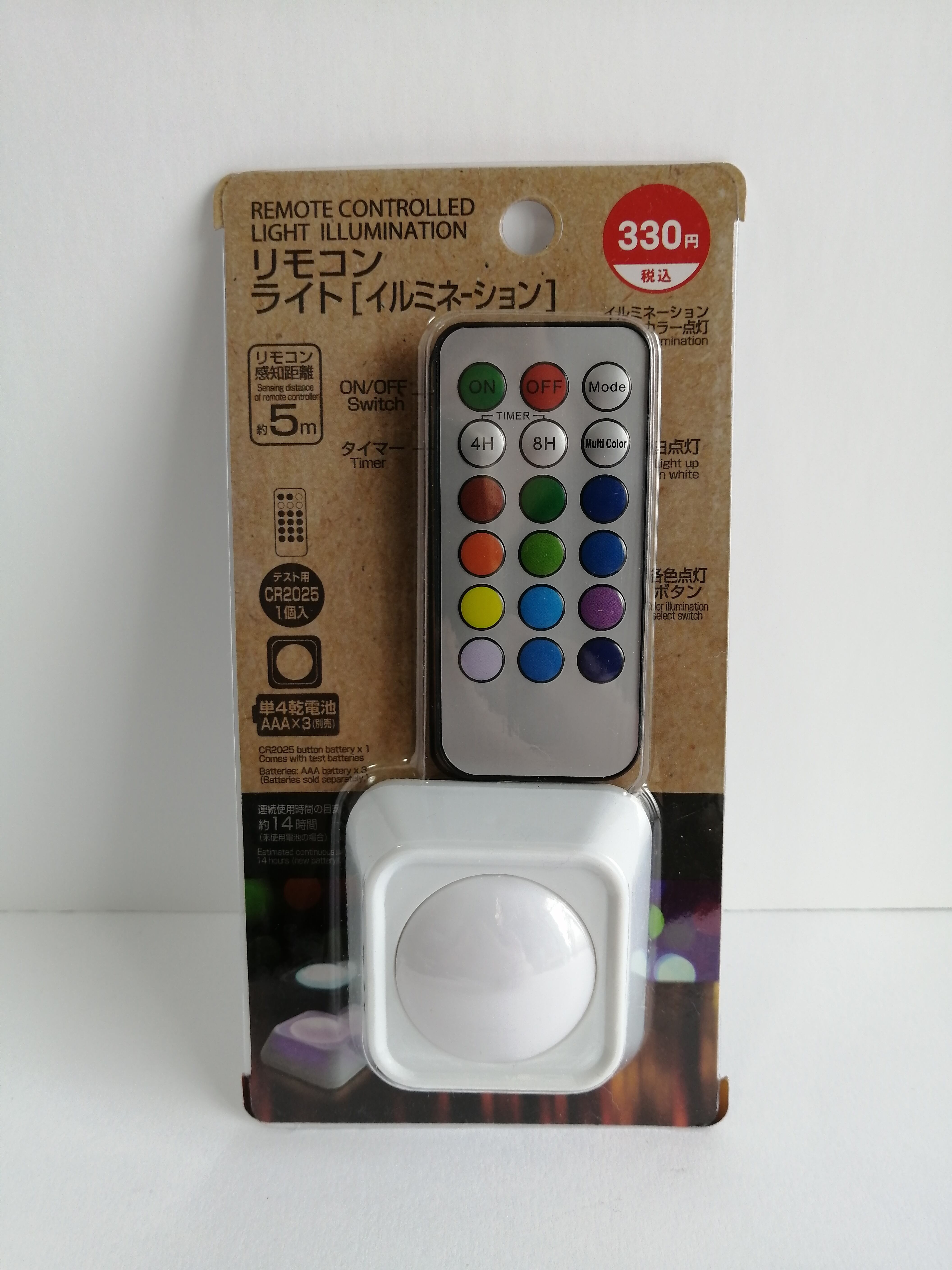 リモコンライトは330円しますが、色が豊富に選べて、ランダムに色が変わっていくモードもあるので、雰囲気があって楽しめます♪